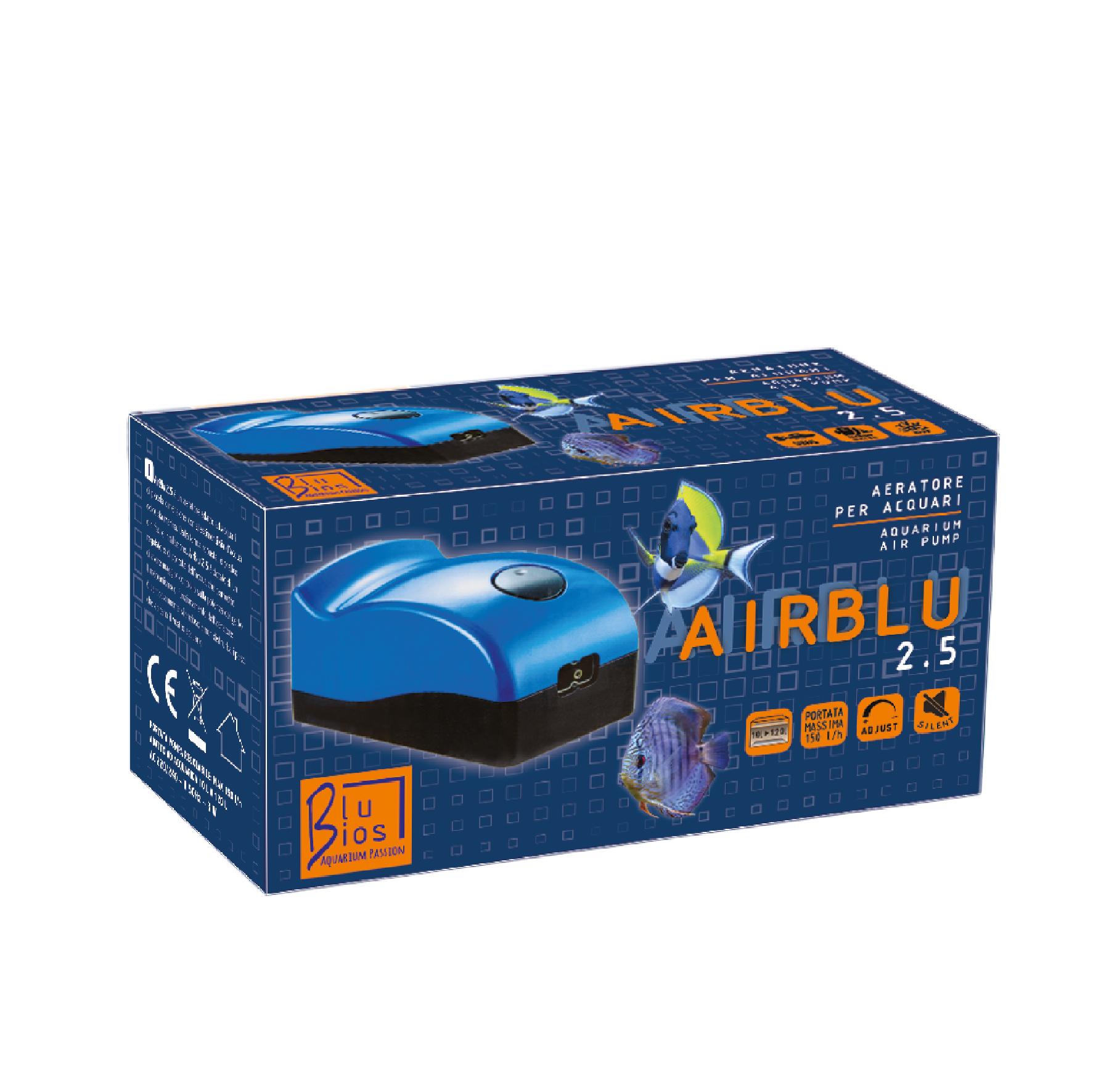 – AirBlu Micro | Cod. AL180009 | Barcode 8022136139005 | Portata Pompa: 72 l/h | Voltaggio-Potenza: AC 220 v/50Hz – 2W | per acquari fino a 50 litri