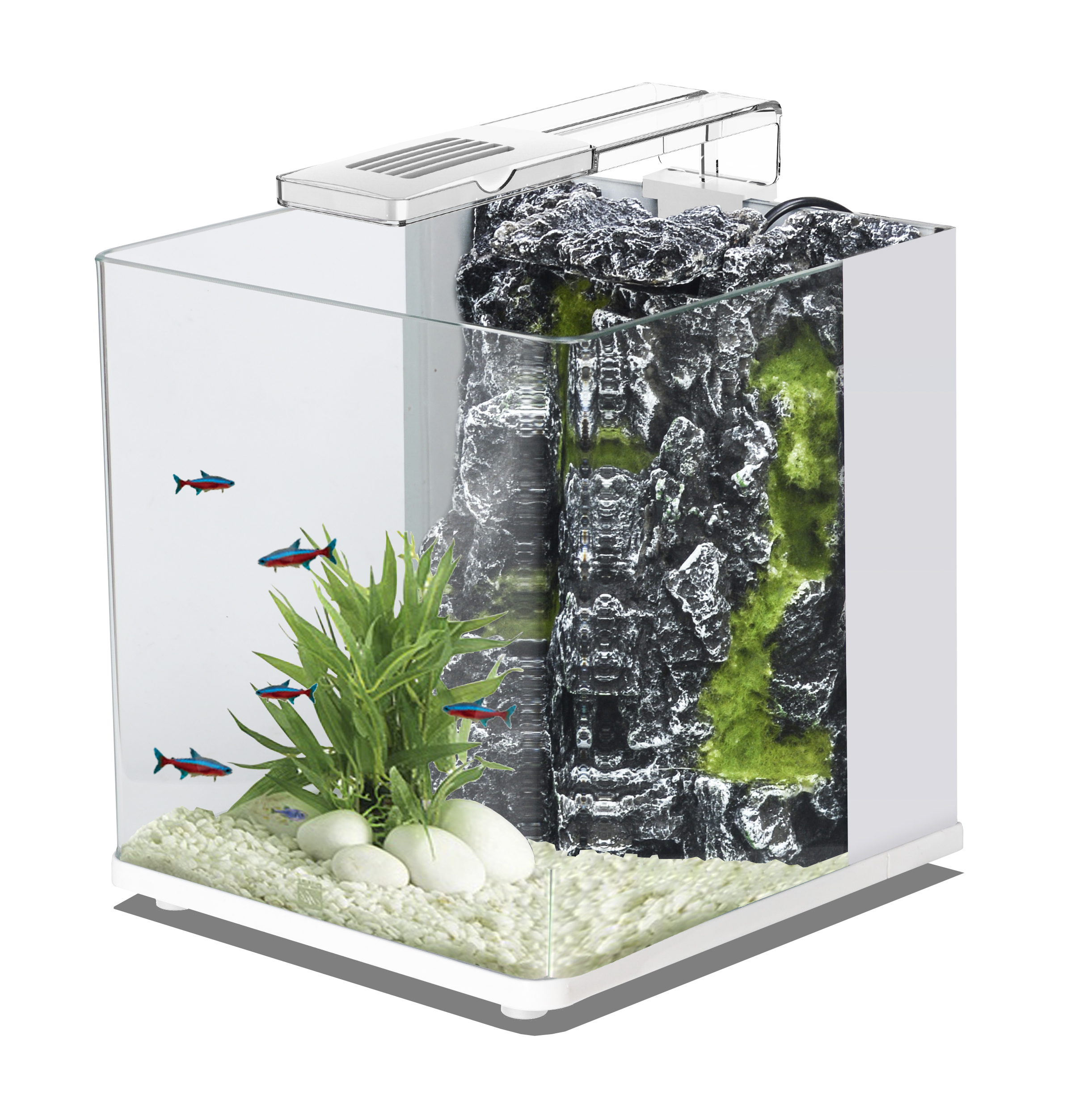 Acquario in vetro dal design moderno ed essenziale, d’impatto ma dalle linee semplici, tutto il fascino del mondo subacqueo in un piccolo formato. Nella versione Rock, grazie allo sfondo tridimensionale in resina riproduce l’ambiente acquatico. Semplice nella forma come nel funzionamento, è particolarmente adatto all’uso da parte dei meno esperti, ma risulta stimolante anche per gli acquariofili più esigenti. Questo acquario è dotato di luce a led e potente filtro interno integrato multi-stadio. Acquario adatto ad allestimenti sia con acqua dolce sia con acqua marina. Disponibile in 2 colori.