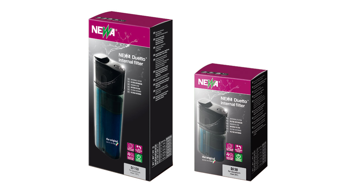 – NewaDuetto 150 | Cod. AH312625 | Barcode 8017003074220 | Voltaggio-Potenza: AC 220 – 240V / 50Hz – 6W | Portata Pompa: MAX 500 L/H | Dimensioni: 80 x 40 x 230(h) mm | per acquari fino a 120 Litri.