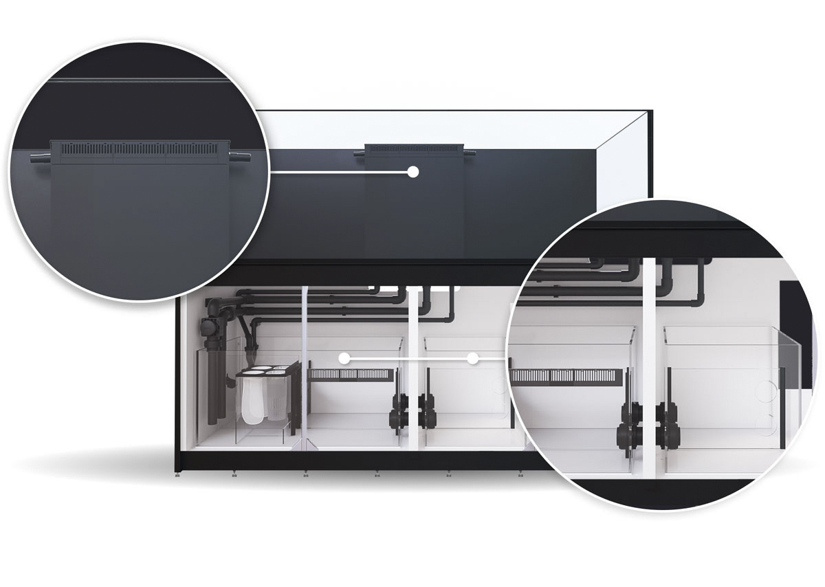 – La coppa di estensione inclusa (60 litri) può essere utilizzata come serbatoio “refugium” o serbatoio indipendente.