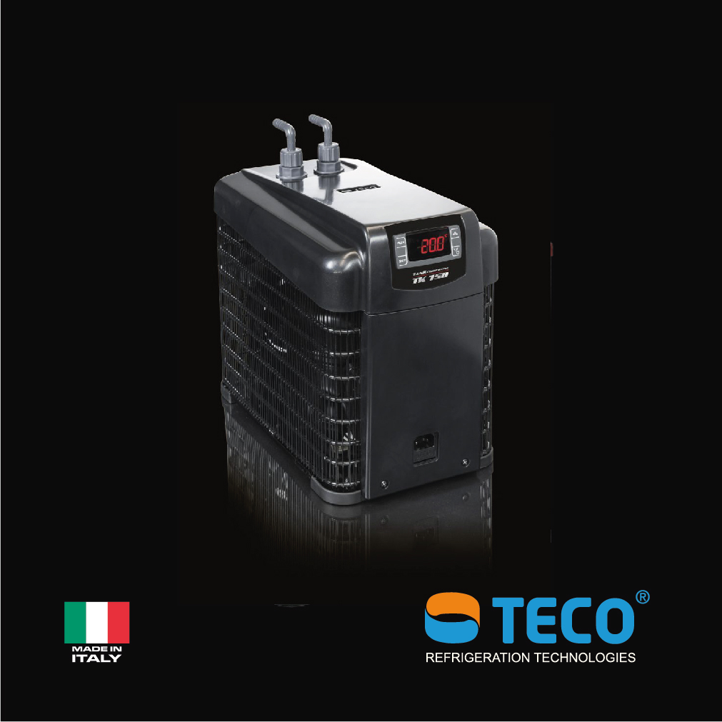 – Refrigeratore TECO TK150 | Cod. AM802005 | Barcode 8022136133485 | Alimentazione: 230V-50Hz | Potenza Elettrica Raffreddamento: 150 w | Gas Ecologico: R134a | Flusso d’Acqua Minimo: 400 L / h | Volume Vasca: fino a 150 litri | Dimensioni: mm. 215 x 361 x 315 (h) mm | Peso: 11,5 kg | Connessioni: raccordo da 1/2” – tubo da 12mm diametro int.