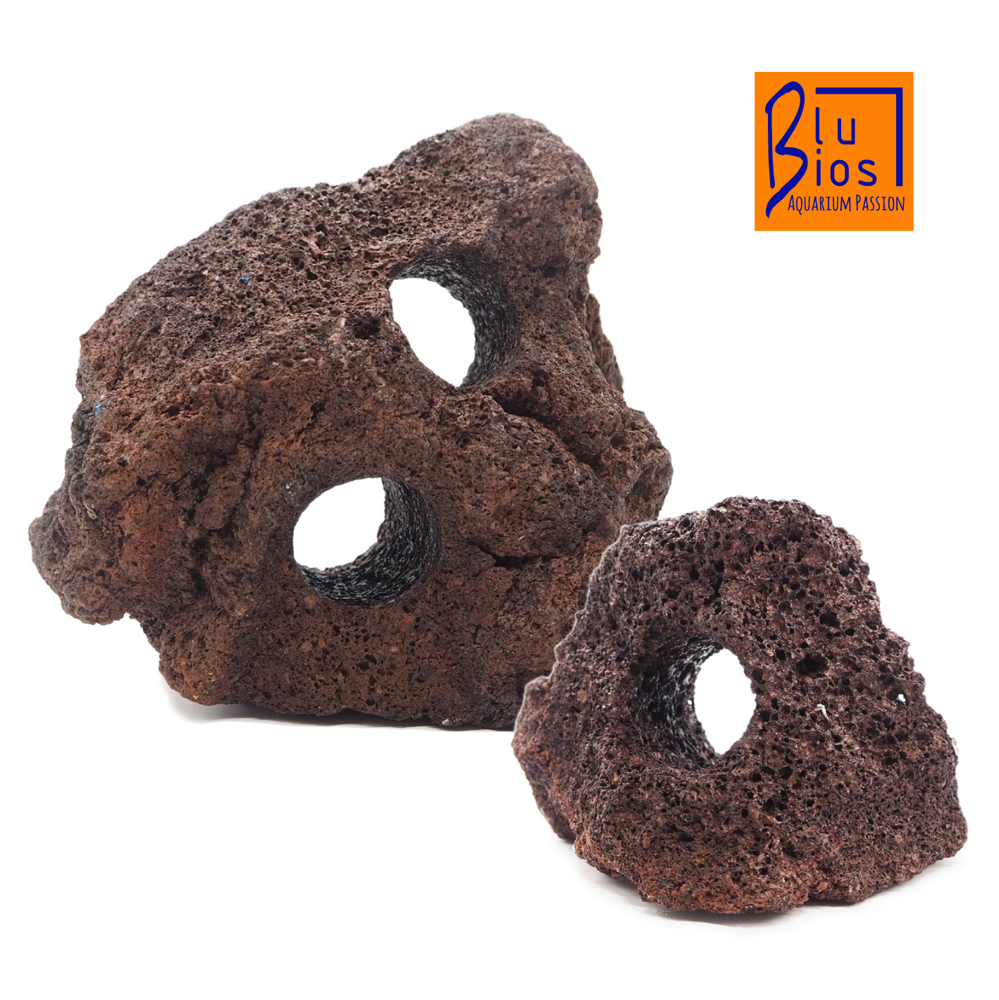La sua particolare forma, con 1 o 2 fori, è particolarmente adatta come riparo per i pesci, che le utilizzano per nascondersi da rumori o movimenti improvvisi. Roccia non calcarea. Disponibile in due dimensioni.
