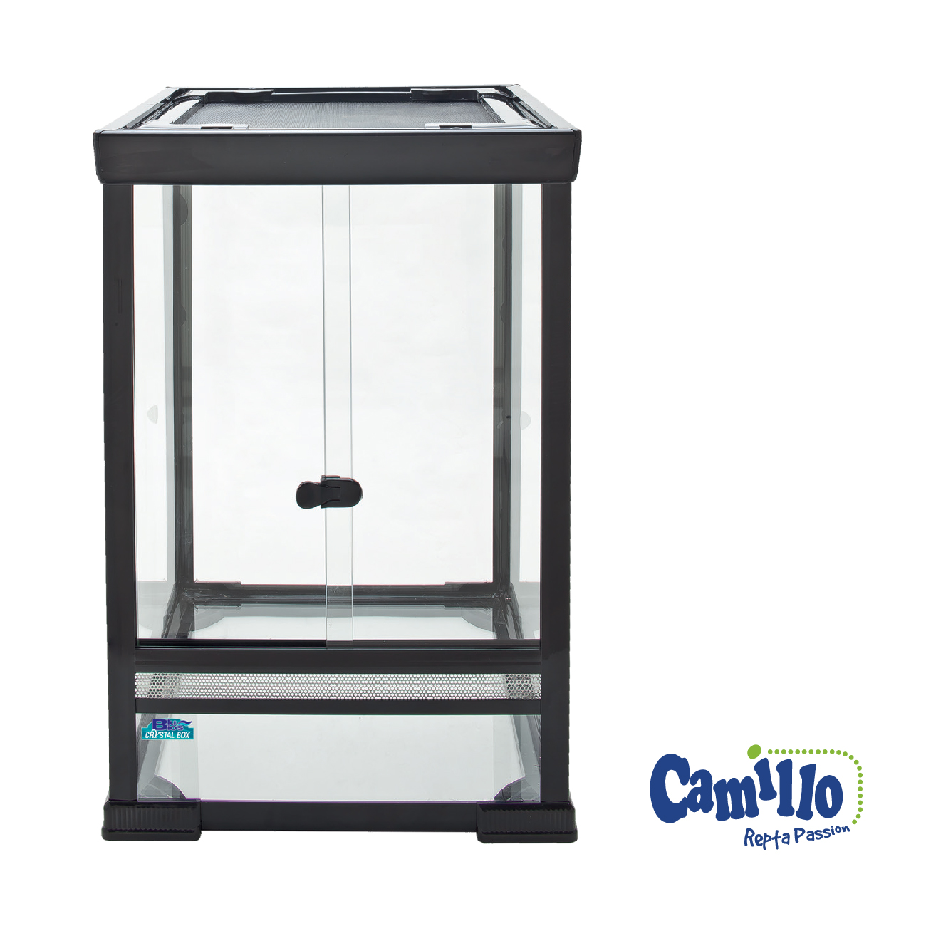 Per mantenere ed allevare rettili e anfibi è fondamentale un buon terrario, che si adatti alle diverse necessità delle varie specie, spesso molto diverse tra loro. I terrari in vetro Camillo – Repta Passion, sono la soluzione ideale per allestire il terrario secondo le esigenze particolari del tuo animale. Dotati di porte scorrevoli con chiusura di sicurezza, per la comodità nelle operazioni di pulizia e manutenzione, e la tranquillità di mantenere al sicuro il rettile. I terrari Camillo hanno un comodo e pratico coperchio in rete per la ventilazione che permette l’entrata dei raggi ultravioletti e infrarossi, facilmente rimovibile per decorare o ripulire il terrario, con chiusure ad incastro.