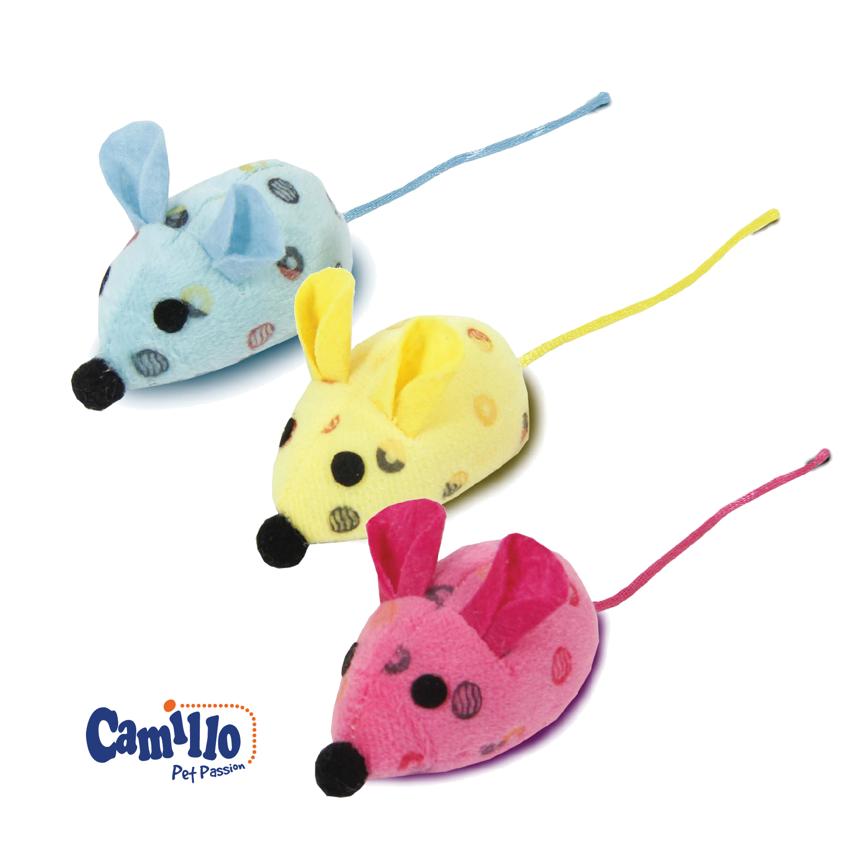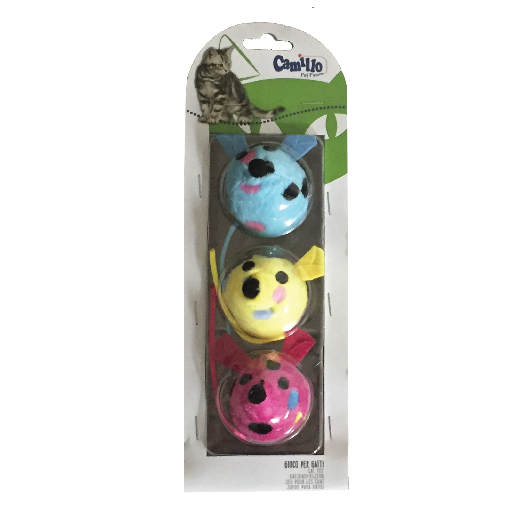 Il topino, uno dei giochi preferiti dai gatti in versione a pois colorati. Farà divertire il vostro gatto, stimolandolo al gioco. Confezione contenente 3 topini in colori assortiti.